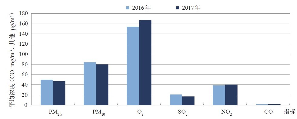 2017年74个城市六项污染物浓度年际比较(图片来源:2017中国生态环境状况公报)