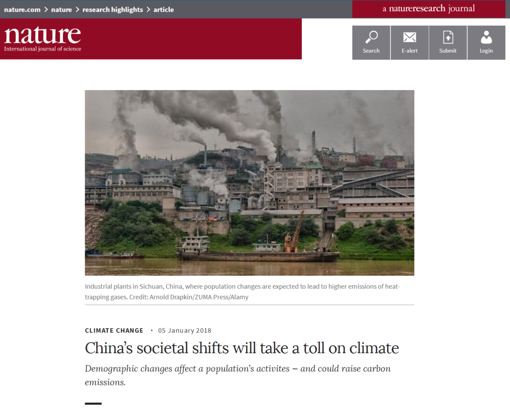 日前,余碧莹和魏一鸣在自然子刊《自然-能源》(Nature –Energy)以研究长文形式(Research Article)发表的题为“中国人口结构转型引起的能源消费和碳排放新情景”(Future scenarios for energy consumption and carbon emissions due to demographic transitions in Chinese households)论文,被遴选为Nature 期刊亮点研究(Research Highlights),并做了特别报道。该栏目同时介绍了Nature、 PNAS等期刊上最新发表的论文。