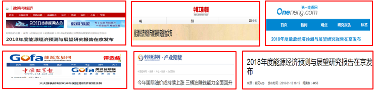 此次发布会受到企业、学术界、主流媒体的广泛关注,新华社、经济参考报、中国科学报、中国工商时报、中国石油报、中国石化报、中国冶金报、中国能源报等传统媒体,以及人民网、央视新闻网、中新网、经济网、中国证券网、中国能源网、财经网、搜狐财经、新浪财经等网络媒体均报道了2018年度《能源经济预测与展望系列研究报告》的发布。《能源经济预测与展望》系列报告是由管理与经济学院魏一鸣教授领导的能源与环境政策研究团队在长期深入研究基础上形成的,自2011年起每年1月初对社会各界发布一次。