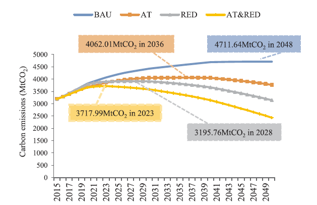 Fig.1 Carbon emissions of China's power industry in four scenarios.