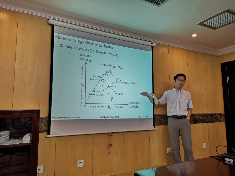 2018年7月9号上午10点,台湾成功大学李家岩教授应邀来访并做题为Nash Equilibrium in Data Envelopment Analysis的学术报告。本次报告由中心王科老师主持,中心师生参与了此次报告。