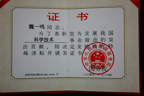 | 国务院特殊津贴